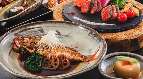 【春の美食フェア】~春を告げる美酒美食、里を遊ぶご滞在。|米沢牛ステーキ付き「春のみのり会席」+ドリンク無料