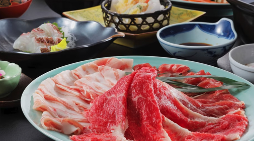 米沢は肉の味覚。「米沢一番育ち豚」は、肉の柔らかさ、甘さ、 脂のうまみのバランスがよく、さっぱりとした上品な味わいが特 徴です。さっぱりとしたしゃぶしゃぶでご賞味下さい。